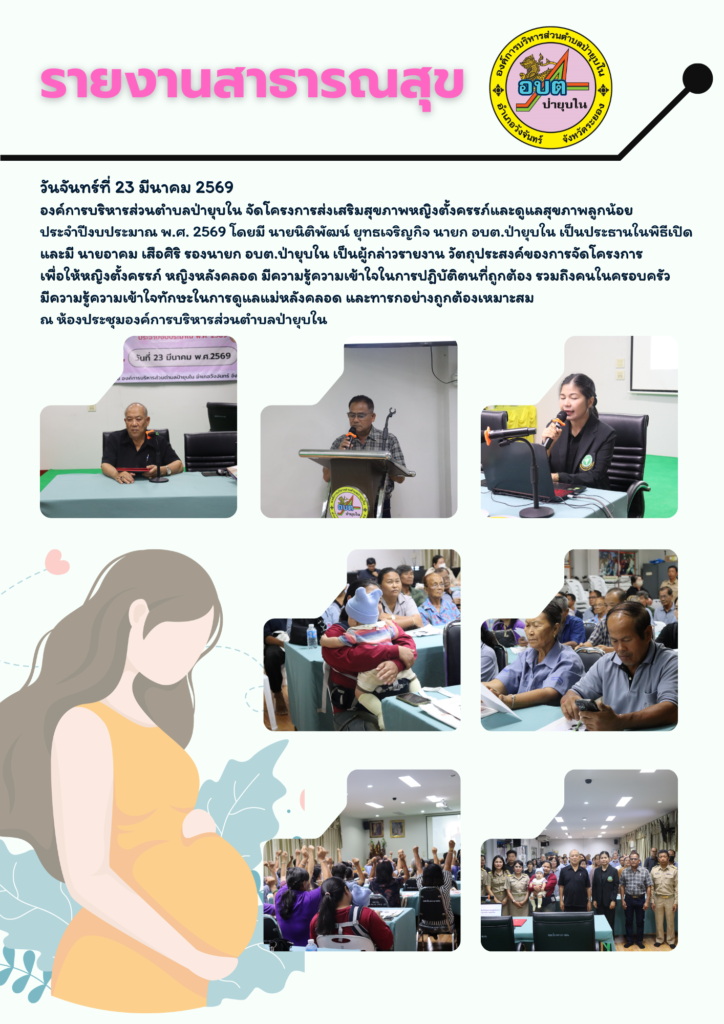 23 มีนาคม 2569 โครงการส่งเสริมสุขภาพหญิงตั้งครรภ์และดูแลสุขภาพลูกน้อย ประจำปีงบประมาณ พ.ศ. 2569 admin 3 ชั่วโมง ago