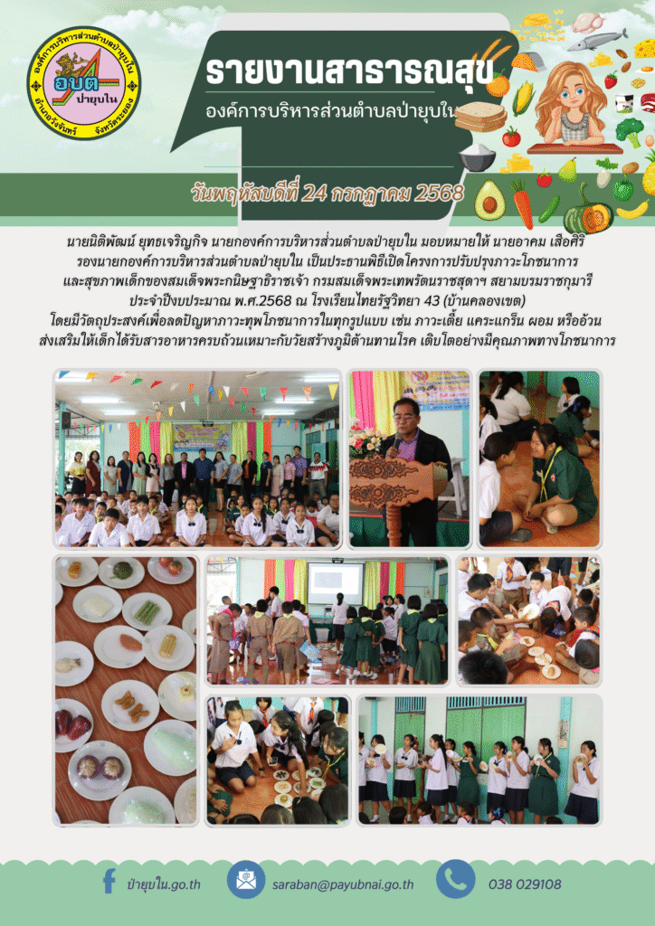 24 กรกฏาคม 2568 โครงการปรับปรุงภาวะโภชนาการและสุขภาพเด็กของสมเด็จพระกนิษฐาธิราชเจ้า กรมสมเด็จพระเทพรัตนราชสุดาฯ สยามบรมราชกุมารี ประจำปีงบประมาณ พ.ศ. 2568 admin 2 เดือน ago